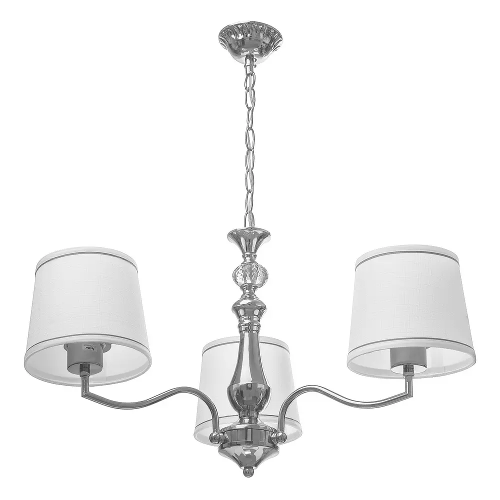 Люстра с абажурами BKL-658S/3 E27 CH хорошо подойдет для освещения гостиной, спальни, столовой. Она излучает мягкий, приглушенный свет, не утомляет глаза, и тем самым создает уютную, теплую обстановку. Традиционно конструкция люстры состоит из металлического хромированного каркаса, к которому прикреплены три плафона. Плафоны тканевые, белого цвета, выполнены в форме усеченного конуса. Именно текстиль поглощает яркий свет от ламп, что положительно влияет на уют в доме. Для работы необходимо использовать три лампочки с цоколем Е27 (раскалительная, энергосберегающая, светодиодная). Высоту можно изменять с помощью металлической цепи путем удаления или добавления звеньев. На всю продукцию действует гарантия.