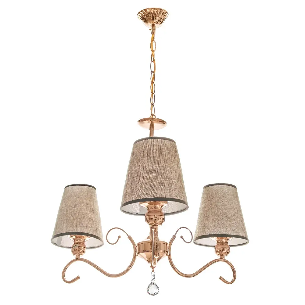 Люстра с абажуром BKL-652S/3 E27 FG в зависимости от стиля интерьера может сделать комнату более уютной или более стильной и интересной. Она будет хорошо смотреться как в классическом, так и в современном стиле. К металлическому каркасу золотистого цвета прикреплены три плафона-абажура коричневого цвета. Благодаря конструкции, свет от ламп приглушается и направленно рассеивается от абажуров. Тканевые абажуры имеют свойство частично поглощать свет, создавая спокойную, интимную атмосферу. Высоту можно изменять, путем удаления или добавления звеньев цепи. Для работы необходимо использовать три лампочки с цоколем Е27 (раскалительная, энергосберегающая, светодиодная).