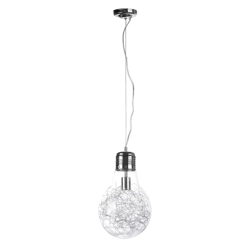 Для тех, кто выбирает простоту и практичность в предметах интерьера, для тех, кому успели порядком надоесть громоздкие люстры с множеством декоративных подвесок и цепочек, для тех, кто предпочитает оставлять пространство для полета фантазии, именно этим людям мы предлагаем обзавестись люстрой в современном стиле BR-01 322S/1 E27. Вы только посмотрите на нее, мастера постарались на славу и изготовили оригинальную люстру в форме... простой лампочки! Да, да, именно лампочки. Здесь и стеклянная прозрачная грушевидная колба, и металлический тип цоколя. Внутри колбы находится крепление для лампочки и множество металлических декоративных элементов, переплетенных между собой. К потолку люстра-лампочка подвешивается с помощью металлического троса, благодаря которому вы сможете самостоятельно регулировать высоту осветительного прибора. Для работы люстры необходима всего одна лампа с цоколем Е27 мощностью 60 Вт. Хорошо такая люстра будет смотреться в квартире-студии, в помещении, выполненном в стиле hi-tech. Живите нестандартно, ведь так гораздо интереснее!