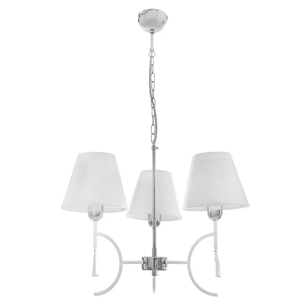 Подвесная люстра NOWODVORSKI 4507 может украсить гостиную, спальню или столовую. Металлический каркас белого цвета дополнен хромированными вставками. Белые абажуры изготовлены из ткани. Высоту люстры можно регулировать, удаляя или добавляя звенья на цепи. Для работы модели требуется три лампочки с цоколем E14. Подходят светодиодные, энергосберегающие или лампочки накаливания. Рекомендуем использовать светодиодные лампы, поскольку они не нагреваются, не излучают вредных веществ и потребляют мало электроэнергии.