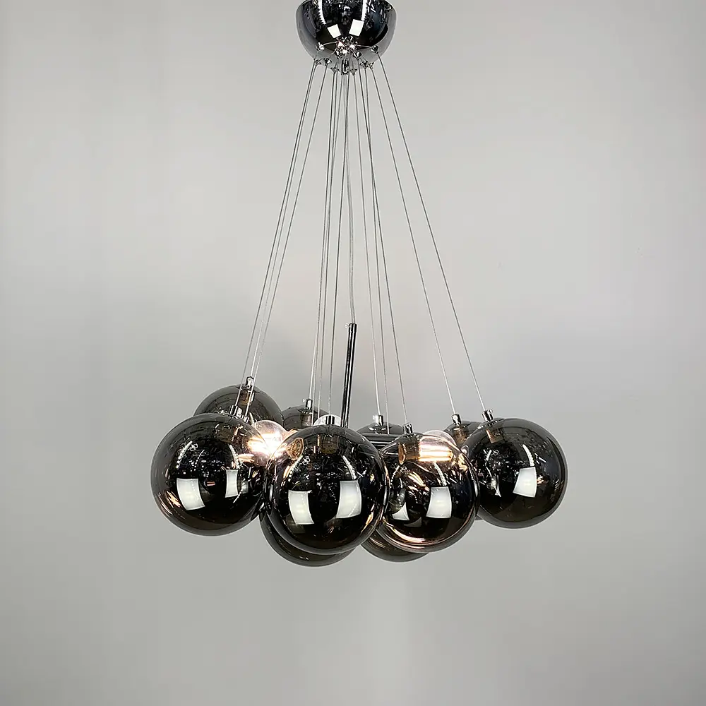 Люстра-пучок в металлическом корпусе цвета хром с графитовыми плафонами (12 шт. диаметром 15 см). Цоколь Е27 на 3 лампы. Общий диаметр люстры - 55 см. Высота люстры регулируется от 40 до 180 см. Цвет основы: 55 Тип помещения: Люстры для гостиной (в зал) Форма_изделия: Круг Серия: MJ140 Цвет плафона: Графит Размер потолочной основы: 8х15 см Максимальная высота: 180 см Минимальная высота: 40 см Тип цоколя: E27 Размер плафона: 15 см Материал основы: Металллл Размер монтажной планки: 15 см Тип крепления: Монтажная планка Количество источников света: 3
