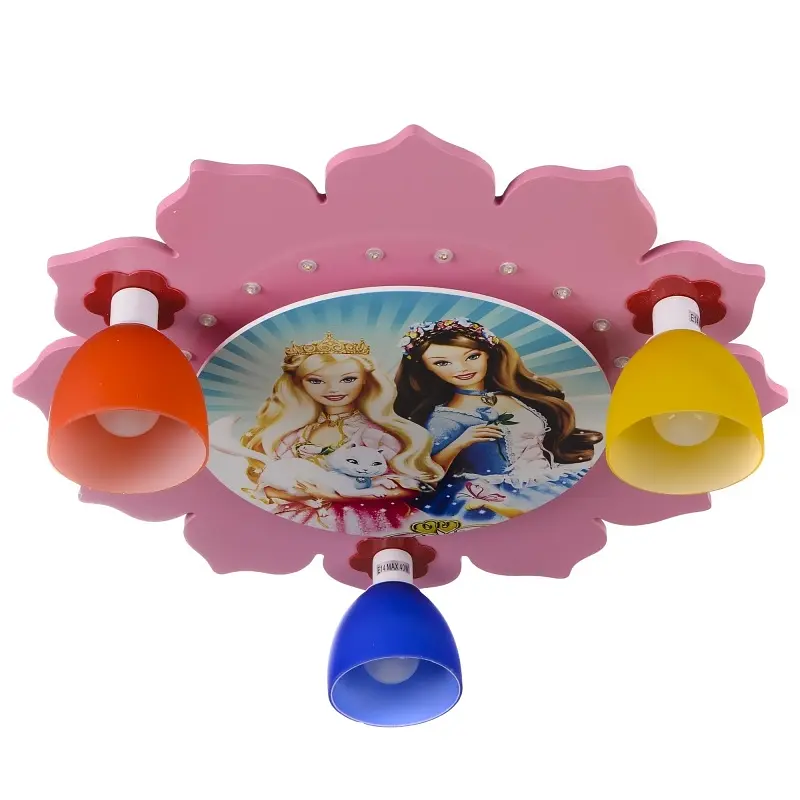 Люстра KL-416C/3 E14 PN предназначена для освещения детской комнаты. Яркая, прочная, компактная, она станет главной изюминкой в интерьере, придаст ему сказочного настроения. Изготовлена из дерева и стекла. Конструкция состоит из основания, выполненного в виде подсолнуха розового цвета, на краях которого размещены три небольших стеклянных плафона оранжевого, желтого и синего цвета. В центре основания изображены две красивые принцессы со светлыми и темными волосами. Источником света в люстре выступают три лампочки с цоколем Е14 и мощностью 40 Вт. Лучше использовать лампочки с теплым белым оттенком света. Дополнительно люстра оборудована подсветкой, которая размещена по периметру основания. Люстра подарит детской комнате уют, комфорт и качественное освещение.