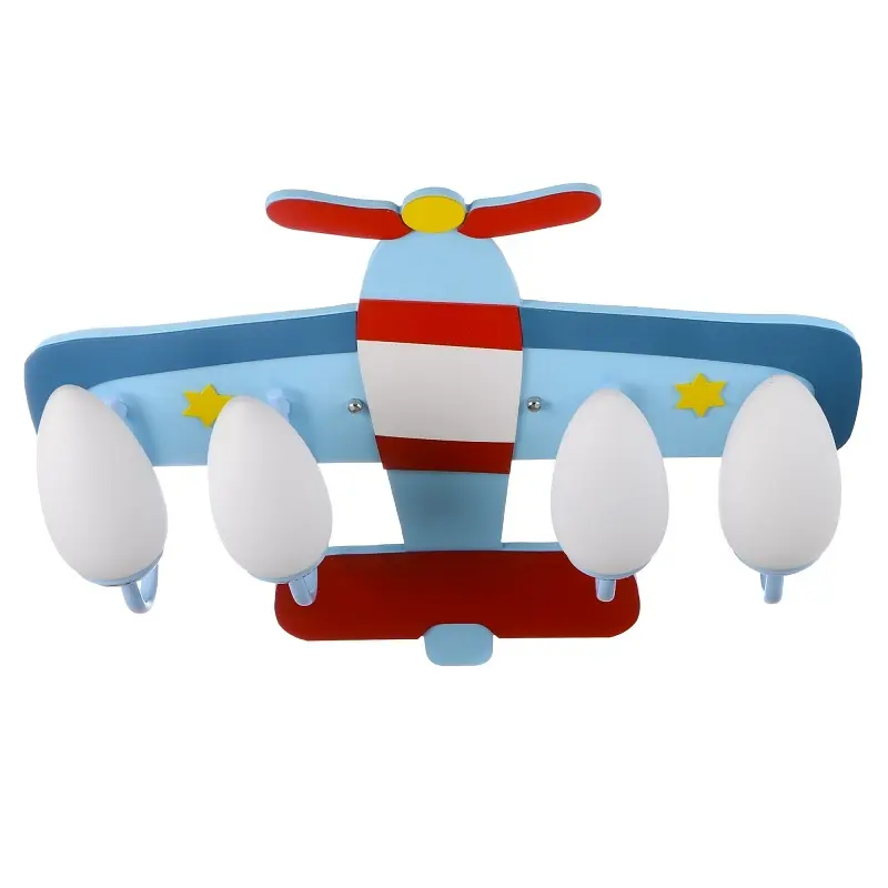 Потолочная люстра самолет на 4 лампы в детскую KL-413C/4 E14 BL изготовлена в форме игрушки. Такой декоративный светильник самолет подойдет для детских и мальчиков, и девочек. Люстра изготовлена из металла, дерева и стекла, имеет яркую расцветку. На ее корпусе находится четыре стеклянных матовых плафона, которые напоминают детали самолета. Для работы люстры нужны четыре лампочки с цоколем Е14 мощностью 40 Вт. Подойдут светодиодные, энергосберегающие и лампы накаливания. Выбирая лампочки для детской, необходимо помнить о том, что самым благоприятным для глаз ребенка является теплый белый свет. Матовые плафоны люстры равномерно распределяют световой поток и обеспечивают качественное мягкое освещение. К потолку модель крепится с помощью монтажной планки. Люстра подойдет для детских с любой высотой потолков, высота люстры - 18 см. На всю продукцию действует гарантия.