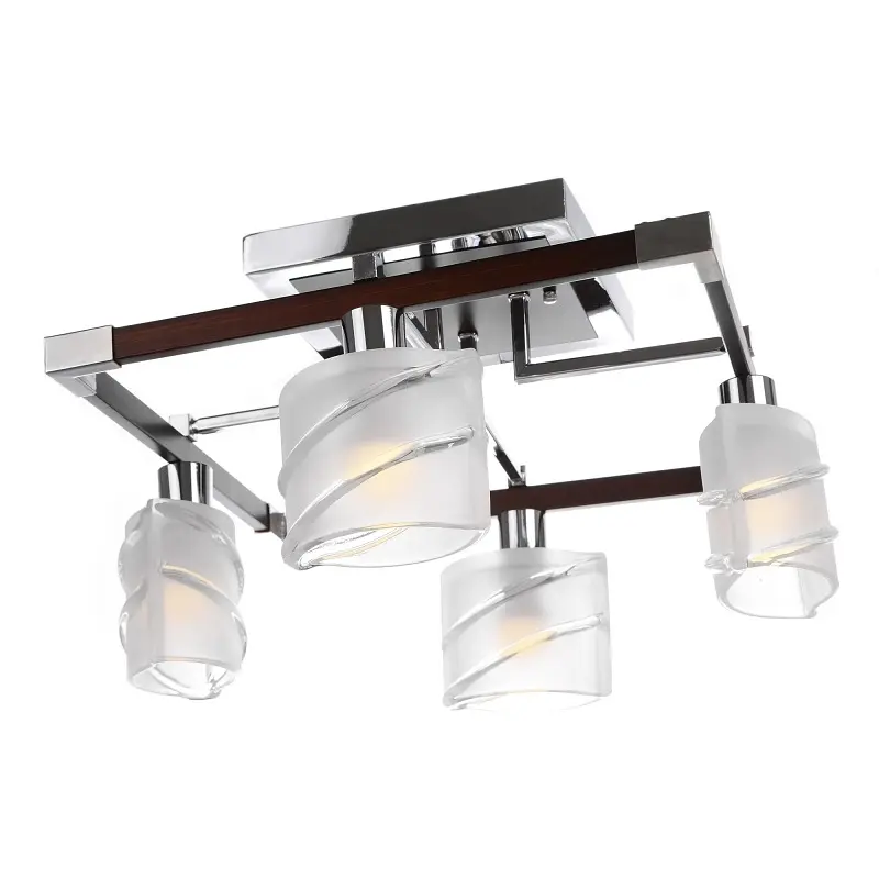 Если ваш дом обставлен в современном стиле, тогда без осветительного прибора, выполненного в таком же духе вам не обойтись. Предлагаем вам дополнить дизайн интерьера вашего дома стильной и оригинальной люстрой BR-588S/4 E14 CH+W. Люстра изготовлена из металла и стекла, ее конструкция плотно прилегает к потолку, поэтому вы можете быть уверены в том, что на потолке она не займет много места, и общий вид помещения не отяготит. Металлический каркас люстры выполнен в форме квадрата, по периметру которого расположены четыре стеклянных плафона с матовым узором белого цвета. Плафоны имеют продолговатую форму, края - фигурные. Для работы люстры необходимо использовать четыре лампы с цоколем Е14 мощностью 40 Вт. Задается вопрос, куда можно повесить это произведение искусства? Мы ответим просто: куда угодно, все зависит от вашей фантазии.