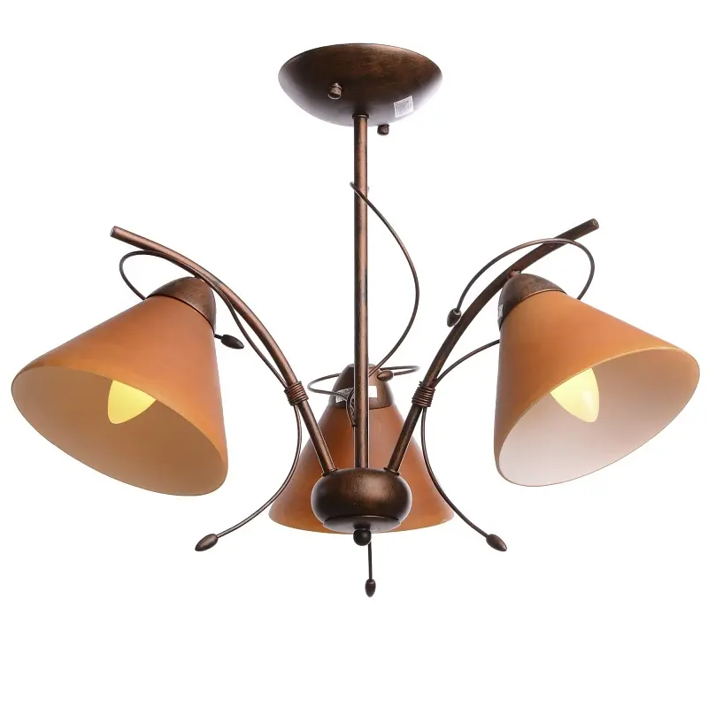 Мы рады предложить вам и вашим близким оригинальную люстру BKL-186S/3 E27. Люстра яркая, содержит кованые элементы, которые гармонично сочетаются с плафонами оранжевого цвета. Плафонов три, визуально они напоминают форму пирамиды. Для работы люстры необходимо использовать, соответственно, три лампочки с цоколем Е27 мощностью 60 Вт. Люстра станет главным украшением любой комнаты в вашем доме, она прочная, способна прослужить вам в течение многих лет. Излучаемый ею свет способен придать дому уют и комфорт, сделать его визуально теплее. Уже с первых вечеров работы данной люстры, вы не пожалеете о своем приобретении ни на минуту, а приемлемая цена сделает покупку еще приятнее. На всю продукцию действует гарантия.