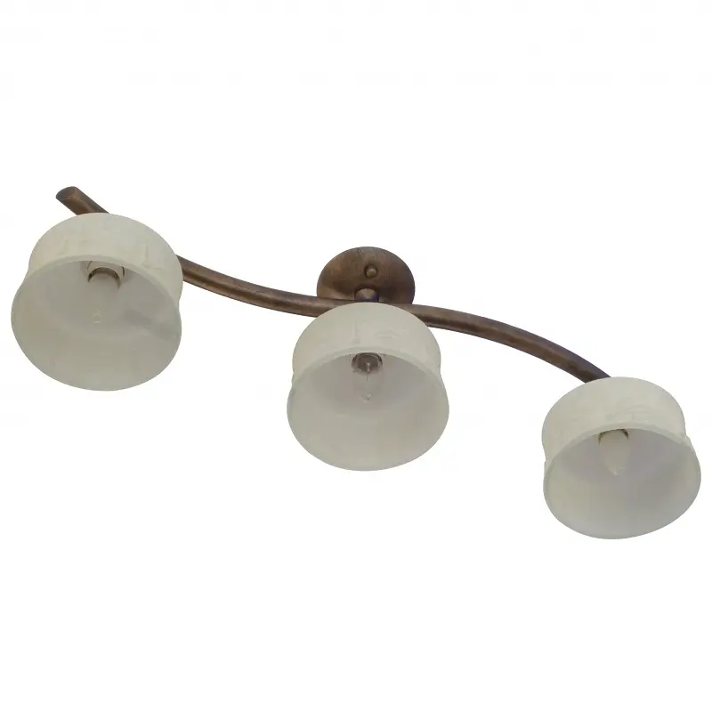 Если вы устали от помпезных и огромных люстр с множеством декоративных подвесок и цепочек, которые занимают полкомнаты и утяжеляют ее внешний вид, тогда люстра LK-211S/3 E27 это именно то, что вам нужно. Она придаст комнате невесомость и ощущение большего пространства, а вам подарит огромную площадь для полета фантазии, ведь во главе с данной люстрой вы сможете придумать даже самый непредсказуемый дизайн интерьера. Благодаря своей компактности ее можно повесить даже в самой маленькой комнате вашего дома. Изготовлена люстра из металла и стекла, содержит в себе кованые элементы. К металлическому каркасу цвета старого золота прикреплены три стеклянных плафона в форме чаши. Благодаря матовости стекла свет будет мягким и приятным для восприятия. Люстра рассчитана на три лампы с цоколем Е27 мощностью 60 Вт.