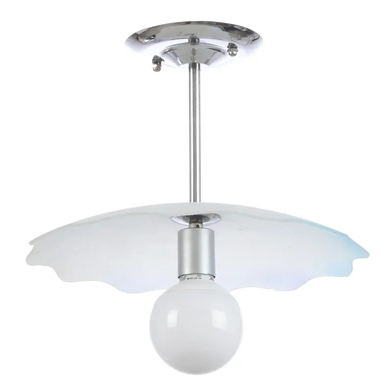 Из габаритов стоит отметить: вес - 2,25 кг, высота светильника - 380 мм, диаметр - 350 мм. Мощность - 60 Вт. Основным стилем такого светильника принято считать техно. Форма светильника - асимметричная.