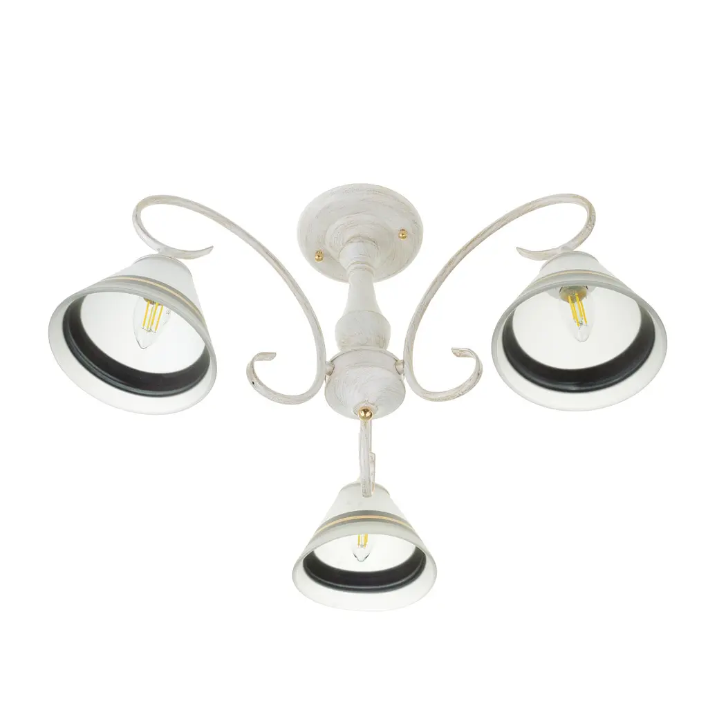 Люстра LK-707S/3 E27 WHG имеет металлический корпус белого цвета. Три плафона изготовлены из матового полупрозрачного стекла, украшенного черной каймой с золотистой линией посередине. В качестве источников света используются три лампочки с цоколем Е27 и максимальной мощностью 60 Вт. Это могут быть светодиодные, энергосберегающие или лампы накаливания. Дизайн светильника, с фигурной основой и изящными держателями подходит скорее к классическим интерьерам, но сможет вписаться и в их современные интерпретации. Люстра будет прекрасно смотреться в домашней обстановке, в кафе, гостинице или шоу-руме.