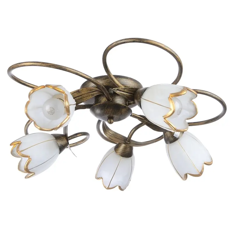 Все знают, что для того чтобы украсить дом достаточно внести в него букет цветов. Люстра LK-198S/5 E14 в стиле флористика будет идеальным украшением любой комнаты. При изготовлении люстры мастера выигрышно сочетали два материала: стекло и металл. Люстра имеет пять плафонов в виде цветочных бутонов, которые декорированы каймой золотистого цвета. Металлический каркас имитирует форму цветочных стеблей и лепестков. Люстра выглядит симметрично, органично и привлекательно. Для работы люстры необходимо пять лампочек с цоколем Е14 мощностью 60 Вт. Люстру можно повесить в комплекте со светильником, выполненным в стиле флористика, и этот замечательный дуэт украсит вашу комнату, внесет в нее новые краски.