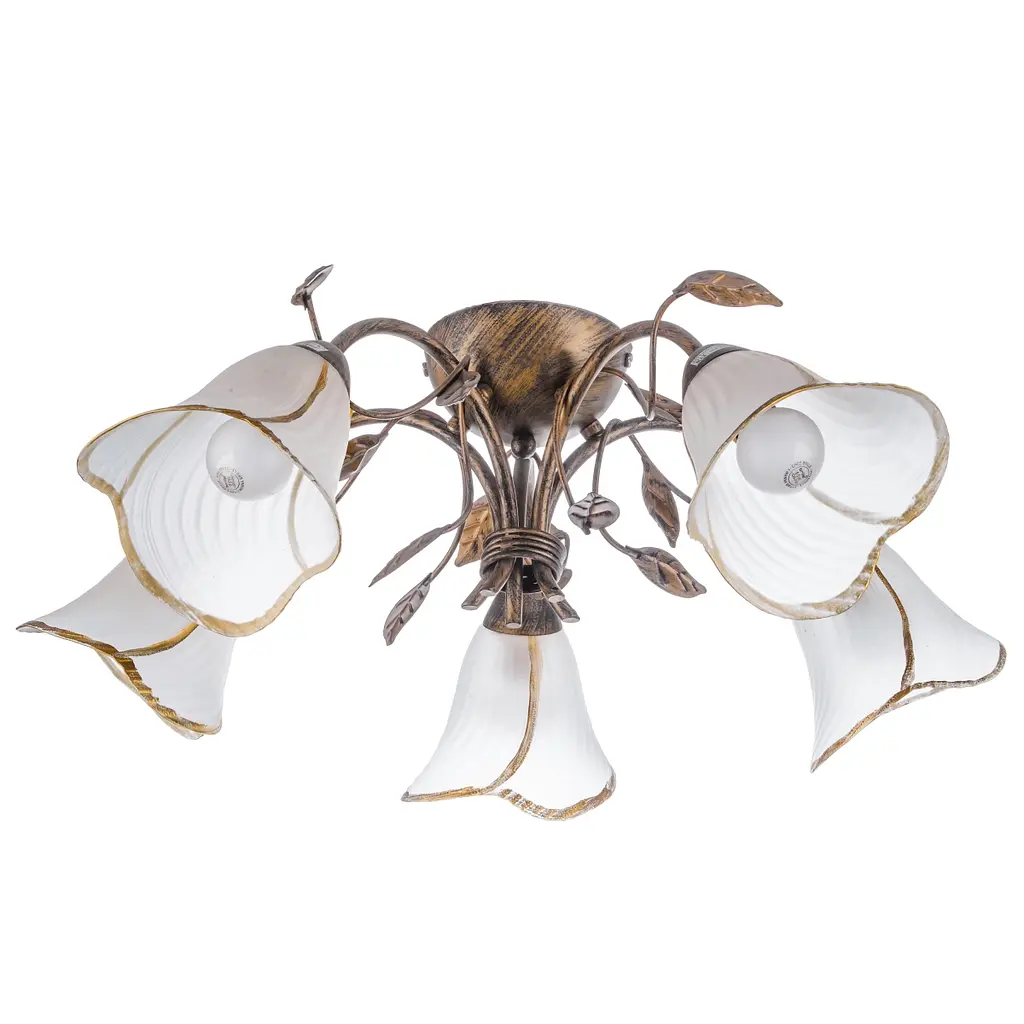 Если Вы любите цветы и не представляете и дня без них, тогда люстра LK-204S/5 E14 - это то, что Вам нужно. Она выполнена в стиле флористика, поэтому цветочные мотивы будут всегда присутствовать в вашем доме. Изготовлена люстра из металла и стекла, имеет форму цветов, где плафоны - бутоны, а металлические декоративные элементы золотистого цвета - лепестки. У люстры пять стеклянных плафонов с матовым покрытием, благодаря чему освещение будет мягким и уютным. Для работы люстры необходимо пять лампочек с цоколем Е14 мощностью 60 Вт. Благодаря небольшому размеру и компактности люстры ее можно помещать как в помещениях с высокими потолками, так и с низкими. Люстру можно вешать вместе с бра, выполненным в стиле флористика, такой комплект украсит вашу комнату и внесет в нее яркие краски в любое время года.