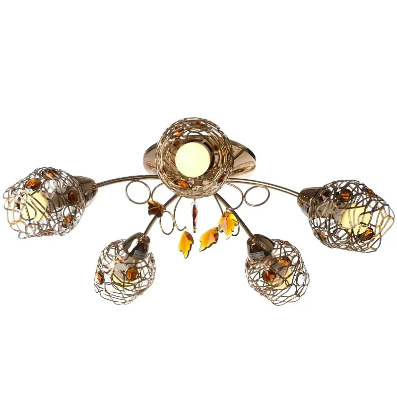 Вы давно подыскиваете себе в дом или квартиру красивую, универсальную, практичную и оригинальную люстру? Вам надоели громоздкие модели, за которые вы цепляетесь головой? Нужна компактная и аккуратная люстра, которая будет прилегать к потолку? Если все именно так, тогда вы попали по адресу! Наша модель LK-159S/5 FGD изготовлена в флористическом стиле, ее плафоны выглядят великолепно, она имеет простой дизайн, что, вместе с выгодной ценой, делают люстру прекрасным украшением для вашего дома. У металлической основы золотистое покрытие, вся люстра декорирована камнями в форме капель, внешне напоминающих рубины. Работает такая модель с помощью пяти лампочек с цоколем Е14. Эта универсальная люстра подойдет для гостиной, спальни, прихожей и кухни. Да и сочетать ее можно как с классическими вариантами интерьера, так и с современными. Скорее заказывайте эту модель прямо сейчас, и, поверьте, этот выбор не заставит вас пожалеть ни на секунду!