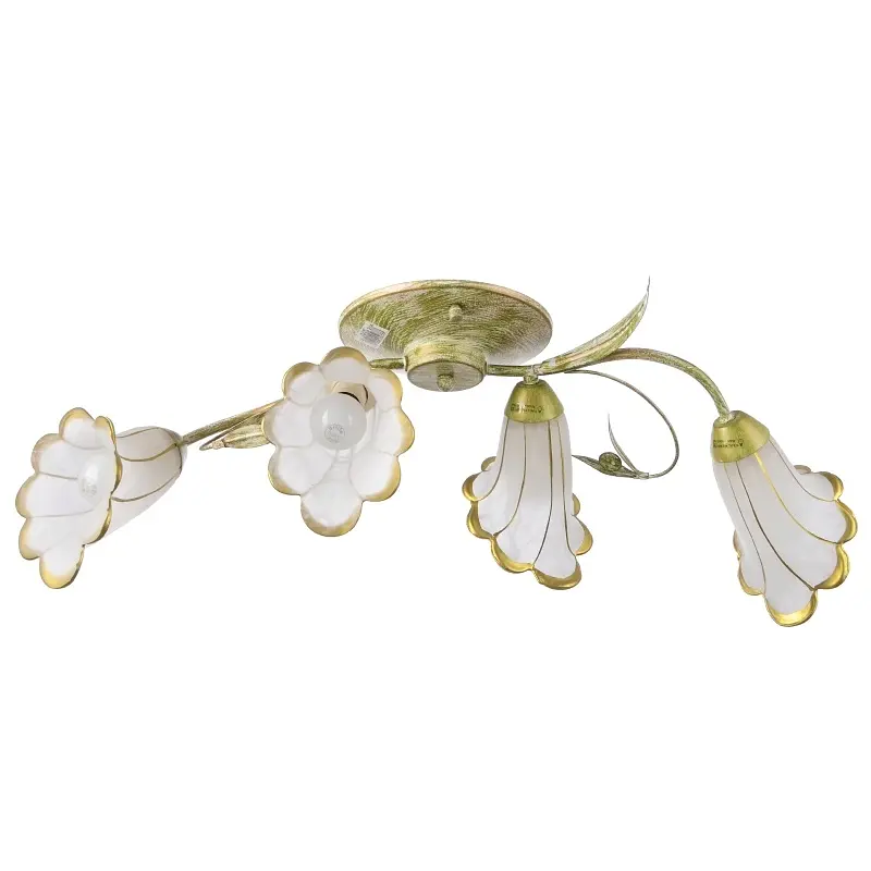 Вдохновленные первозданными цветами, дизайнеры приготовили для вас люстру в стиле флористика LK-208S/4 E14 от ТМ Brille. Свежесть и легкость исходит от нее, а мягкое освещение настраивает на отдых и романтику. Материалами для ее изготовления традиционно послужили металл и стекло. Конструкция достаточно компактна, не займет жилое пространство помещения. Состоит из металлического каркаса зеленого цвета и четырех стеклянных плафонов, выполненных в форме цветочных бутонов. Плафоны белого цвета, украшены золотистыми полосками, с ребристой поверхностью. Для работы люстры необходимо использовать четыре лампы с цоколем Е14. Если вы хотите оригинальное, стильное освещение в доме, тогда вам просто необходимо приобрести данный осветительный прибор и радовать свой взгляд круглосуточно.