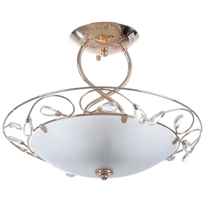 Давно хотите заменить старый светильник новым, но никак не решаетесь? Вам не нужно больше часами блуждать по сайтам или улицам города в поисках нового светильника, ведь Люстра BCL-106S/3C от ТМ Brille в классическом стиле - лучший источник света. Она подарит помещению мягкое, приятное для восприятия освещение, а вам - незабываемые минуты отдыха. Что касается самой люстры, то она изготовлена из металла и стекла, достаточно легкая, но в то же время прочная. Это позволяет вам смело встраивать ее в подвесной потолок. Конструкция люстры состоит из металлического золотистого каркаса и одного стеклянного матового плафона белого цвета. Дополнительно по периметру мастера украсили люстру металлическими завитками с камешками продолговатой формы. Люстра рассчитана на три лампы. Для более яркого освещения в доме, вместе с люстрой можно использовать разного рода потолочные светильники.