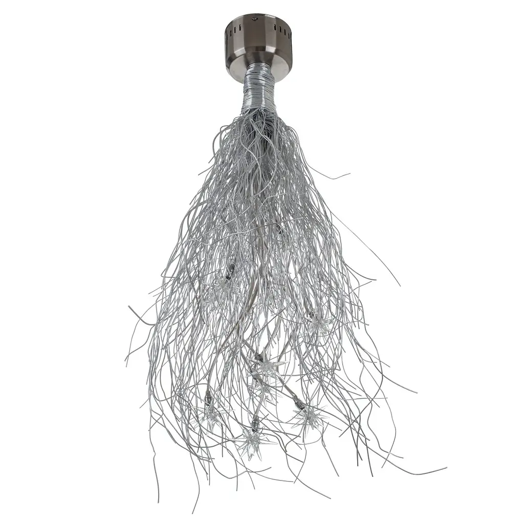 Потолочная люстра BR-01 327/10 в современном стиле будет хорошо гармонировать с современными технологичными устройствами, в ней отсутствуют лишние детали, она будет выигрышно смотреться в комнатах с невысокими потолками. Если ваш дом обставлен новейшей мебелью и другими элементами декора, тогда эта люстра непременно должна дополнять интерьер вашего жилья. Изготовлена она из металла и стекла. Люстра имеет довольно замысловатую конструкцию, которая притягивает взгляд и выделяет люстру среди других осветительных приборов. Небольшие стеклянные звездочки, которые в данном дизайнерском исполнении играют роль плафонов, излучают мягкий, слегка приглушенный свет, делая атмосферу в комнате уютной и слегка романтичной. Для работы этой чудо-люстры вам необходимо приобрести 10 галогенных капсульных ламп с цоколем G4 мощностью 10 Вт. Повесить такое произведение искусства вы можете на кухне, в прихожей. С ней ваш дом вдохнет глоток свежего воздуха. При замене галогенной лампы на светодиодную следует помнить: светодиодная лампа должна иметь индекс цветопередачи не ниже 80; цветовая температура на уровне 2700-6500К; мощность новой светодиодной лампы может быть в 5 раз ниже мощности галогенной лампы, которую нужно заменить; если в маркировке галогенной лампы указано рабочее напряжение 12 В, то в маркировке LED лампы должно быть тоже 12 В, если 220 В, то и на светодиод - 220 В.