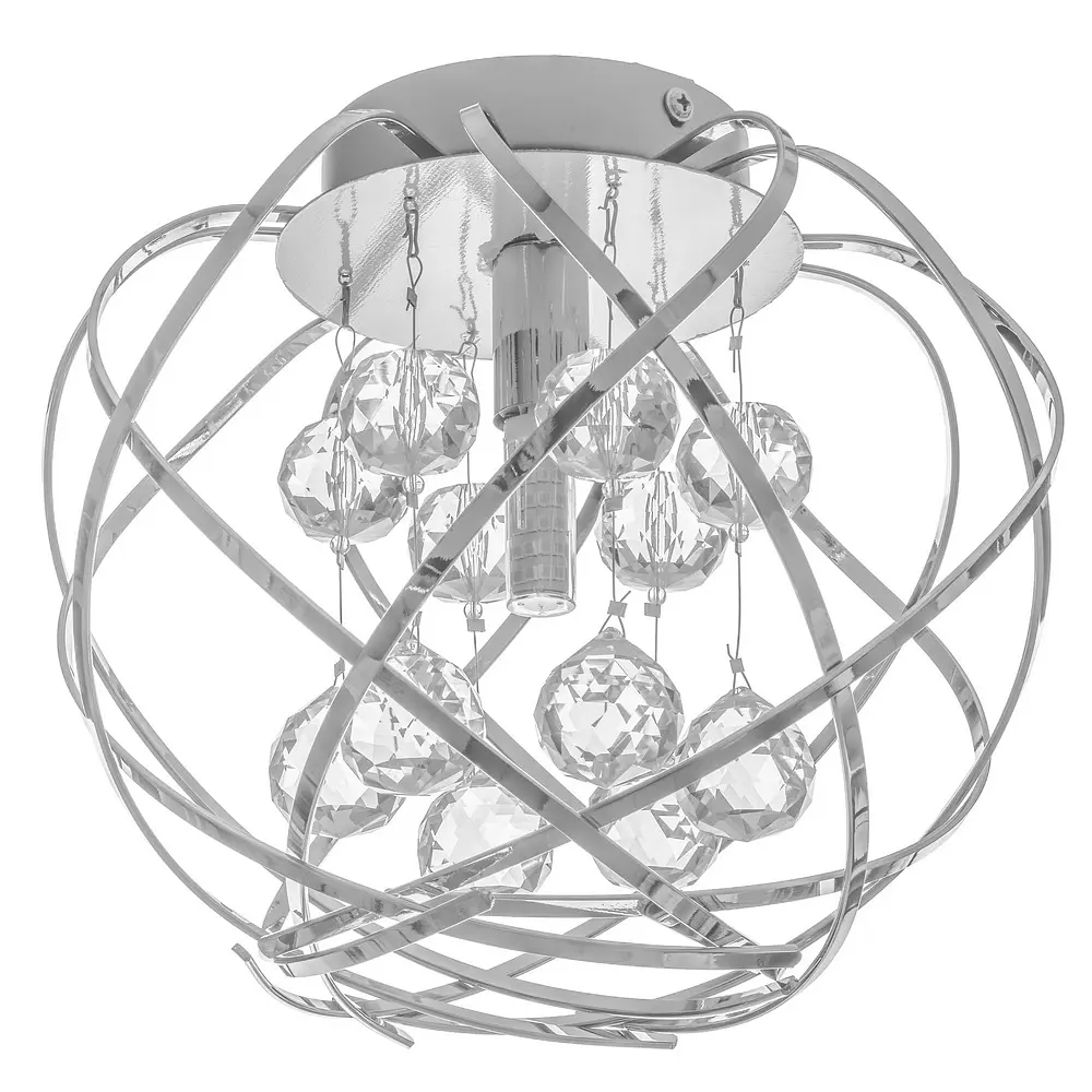 С помощью потолочной люстры в современном стиле BR-942С/1 G9 CH можно оживить комнату любого назначения, даже не прибегая к грандиозному ремонту или перестановке мебели. Люстра полностью изготовлена из металла, окрашена в цвет хром. Выполнена в форме шара, представлена в виде множества металлических элементов, переплетенных между собой. Люстра имеет множество промежутков, через которые будет легко проходить свет и хорошо освещать всю комнату. В центре конструкции осветительного прибора находятся подвески со стеклянными прозрачными гранеными камешками. Для работы необходимо использовать одну галогенную или светодиодную лампочку с цоколем G9.