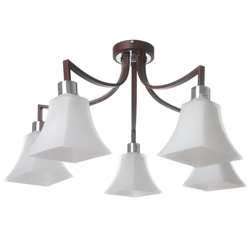 Стеклянный свет пользовался популярностью всегда. Мы не представляем себе осветительный прибор, в котором хотя бы одна деталь не была изготовлена из этого материала. Использование стекла для изготовления люстр является достаточно выигрышным моментом, ведь благодаря свойствам этого материала осветительные приборы из него хорошо пропускают свет, а современные технологии позволяют изготовить стекло высочайшего качества. Люстра LK-284S/5 E14 изготовлена из стекла, имеет металлический каркас, она прослужит вам в течение многих лет, не потеряв своей актуальности. Выполнена она в белом цвете, кроме классического стиля, ее можно поместить в интерьер в стиле модерн, техно, hi-tech, минимализм. Люстра имеет пять стеклянных матовых плафонов суженной к верху формы. Компактная конструкция люстры максимально прилегает к потолку, что тем самым визуально расширит комнату. Для работы люстры необходимы пять лампочек с цоколем Е14.