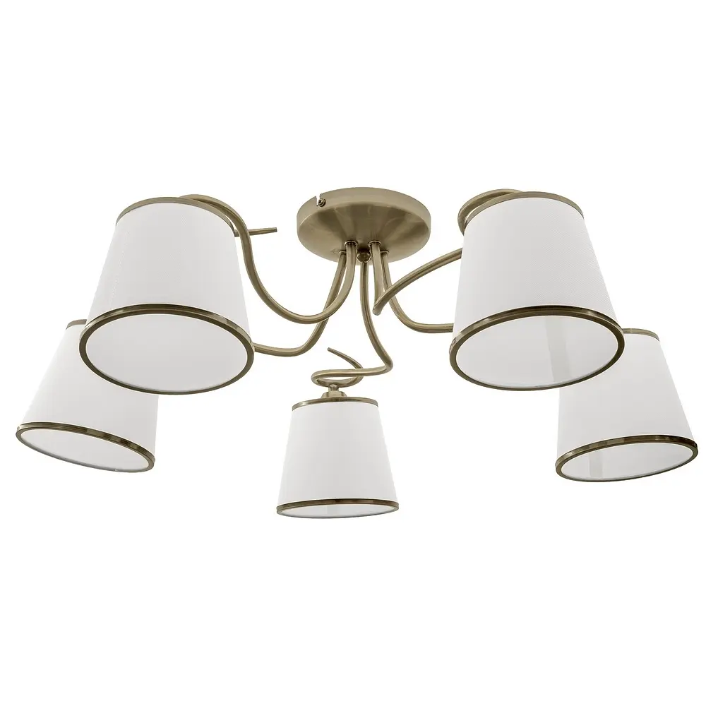 Люстра BKL-717S/5 E14 AB в классическом стиле подходит для освещения спальни, гостиной или прихожей. Она состоит из металлического каркаса цвета старого золота и пяти стеклянных матовых плафонов белого цвета. Дополнительно плафоны украшены металлической каймой такого же цвета, как и каркас. Для работы требуется пять лампочек с цоколем Е14. Подходят светодиодные, энергосберегающие или лампочки накаливания. Рекомендуем использовать светодиодные лампы, так как они не нагреваются, экономят электроэнергию и не содержат вредных веществ. Дополните люстру бра из этой же серии, чтобы освещение было выдержано в одном стиле.