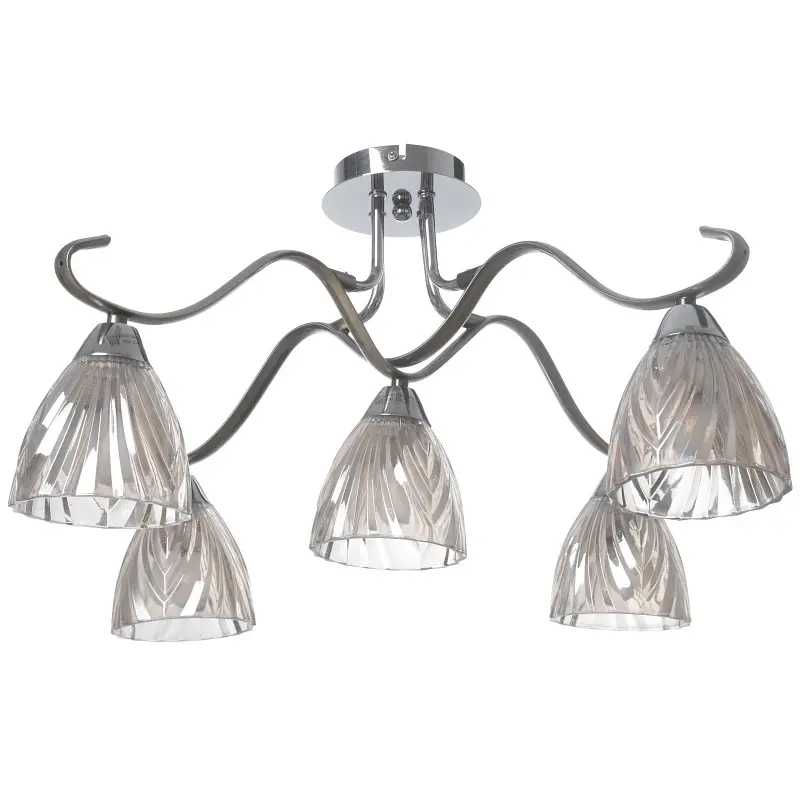 Очень важным моментом при декорировании комнаты является выбор люстры. Ведь в зависимости от свечения, которое она будет излучать, зависит вся атмосфера в доме. Очень важно, чтобы люстра не слепила глаза и не оставляла разноцветные блики на поверхности мебели или бытовой техники. Люстра LK-515S/5 E14 - как раз то, что вам нужно. Она изготовлена из металла и стекла. Современные технологии позволяют производить стекло высокого качества, благодаря чему люстра будет хорошо пропускать свет и служить вам много лет. Люстра имеет металлический каркас золотистого цвета и пять стеклянных плафонов цвета шампань. Люстра рассчитана на пять лампочек с цоколем Е14 мощностью 40 Вт.