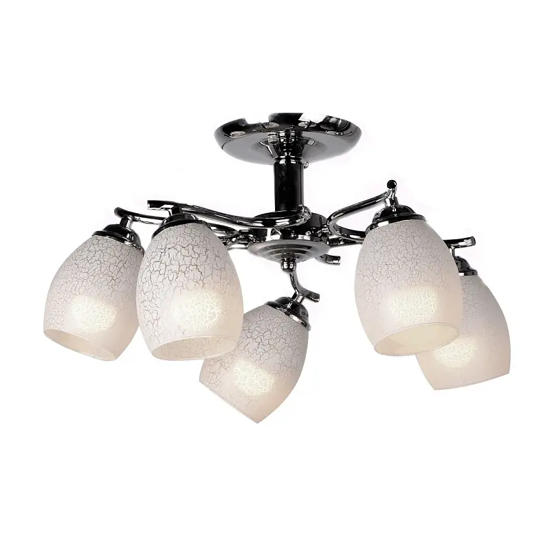 Не пора ли вам обзавестись новой люстрой? Как вам такой вариант - люстра LK-220S/5 E14 CH? Подойдет как для больших помещений с высокими потолками, так и для маленьких, размеры потолка в которых не позволяют повесить шикарный осветительный прибор. Наличие плавных линий и светлых тонов придает люстре легкость и невесомость. В ее дизайне нет ничего лишнего, конструкция выполнена в духе классики: традиционно к металлическому хромированному каркасу прикреплены пять плафонов, направленных в разные стороны, что в свою очередь обеспечивает максимальную освещенность комнаты. Плафоны стеклянные, расписаны нежным матовым узором белого цвета. Хромированное покрытие придает люстре дополнительный блеск и изысканность. Для работы люстры необходимо использовать пять лампочек с цоколем Е14 мощностью 40 Вт. Таким комфортным и уютным ваш дом еще никогда не был, а с появлением в нем данной люстры он преобразится до неузнаваемости.