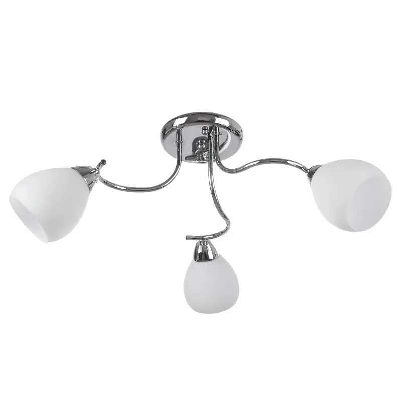 Люстра LK-261C/3 E14 гарантирует вам качественное освещение и хорошее настроение на каждый день. Изготовлена она из металла и стекла, ее конструкция плотно прилегает к потолку. Люстра представляет собой металлический хромированный каркас, к которому прикреплены три стеклянных матовых плафона белого цвета. Благодаря матовости плафонов свет будет мягким, приятным для восприятия. Люстра рассчитана на три лампы с цоколем Е14. Повесить ее вы сможете в любой комнате вашего дома, место расположения люстры будет зависеть от вашей фантазии и интерьера. Хорошо она будет сочетаться со светлыми стенами, мягкой мебелью, легкими портьерами. Выполненная в классическом стиле, люстра не потеряет актуальность и через много лет.