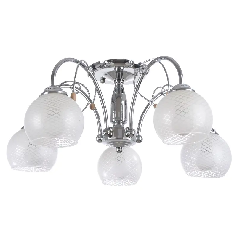Люстра LK-235S/5 E14 CH, выполненная в классическом стиле, изготовлена из металла и стекла, придаст вашему дому красоту и уют. Скромная, компактная, в дизайне которой нет ничего лишнего, но каждая мелочь, каждая деталь требует к себе особого внимания. Россыпь стеклянных матовых плафонов подарит комнате мягкий, слегка приглушенный свет. Металлический хромированный каркас люстры, плотно прилегает к потолку, к нему прикреплено пять плафонов, декорированных сеточкой. Источником света в люстре выступают пять лампочек с цоколем Е14 мощностью 40 Вт. Люстру можно дополнить бра или настольной лампой, выполненными в таком же стиле, хорошо она будет смотреться и с торшером. К тому же, эта модель совершенно новая, так что спешите к нам и обеспечьте себе комфортные вечера в окружении мягкого света ламп. На всю продукцию действует гарантия.