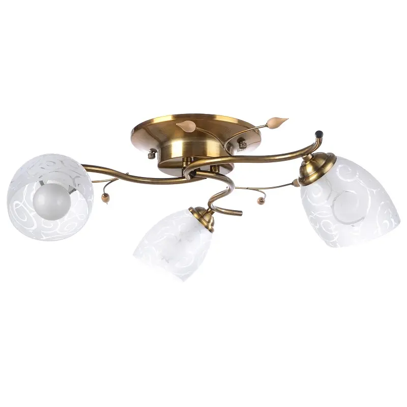 Люстра LK-231S/3 E14 BC завораживает своим внешним видом и мягким светом. А узоры на плафонах придают ей элегантности и выразительно подчеркивают ее стиль. Конструкция данной модели состоит из основания, выполненного из металла, покрытого бронзовой краской. На нем расположены три стеклянных плафона белого цвета, они украшены красивым узором из напыления. Источником света в данной модели являются три лампочки накаливания с цоколем Е14 мощностью 40 Вт каждая. При желании или необходимости лампочки накаливания можно заменить на энергосберегающие или светодиодные лампы. Люстра LK-231S/3 E14 BC отлично дополнит интерьер, выполненный в классическом стиле, а люстру могут дополнить настенные светильники с белыми плафонами на бронзовом каркасе. На всю продукцию действует гарантия.