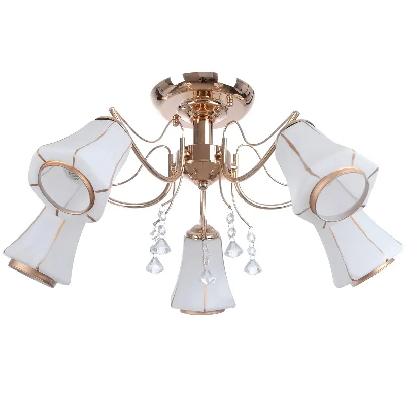 Для квартир, которые не могут похвастаться высокими потолками и большими размерами, мы подготовили нечто особенное - люстру в классическом стиле LK-279S/5 E14. Абсолютно новая, изящная и невесомая люстра станет главным козырем дизайна интерьера любой комнаты в вашем доме. Дизайн ее лишен излишних декоративных элементов, но это ни в коем случае не является минусом, а, наоборот, позволяет вам самостоятельно оформить помещение по своему вкусу, а люстра будет дополнением к вашей идее. Изготовлена она из металла и стекла, имеет металлический каркас в виде разветвлений, к которому по традиции прикреплены пять плафонов. Они стеклянные, матовые, продолговатой формы, декорированы золотистой каймой. Кроме этого люстра дополнительно украшена стеклянными прозрачными цепочками. Источником света в люстре выступают пять лампочек с цоколем Е14 мощностью 40 Вт. Так что, не грустите, если размеры вашего дома не позволяют повесить помпезную люстру с множеством декоративных элементов, люстра LK-279S/5 E14 - отличный выход из сложившейся ситуации.