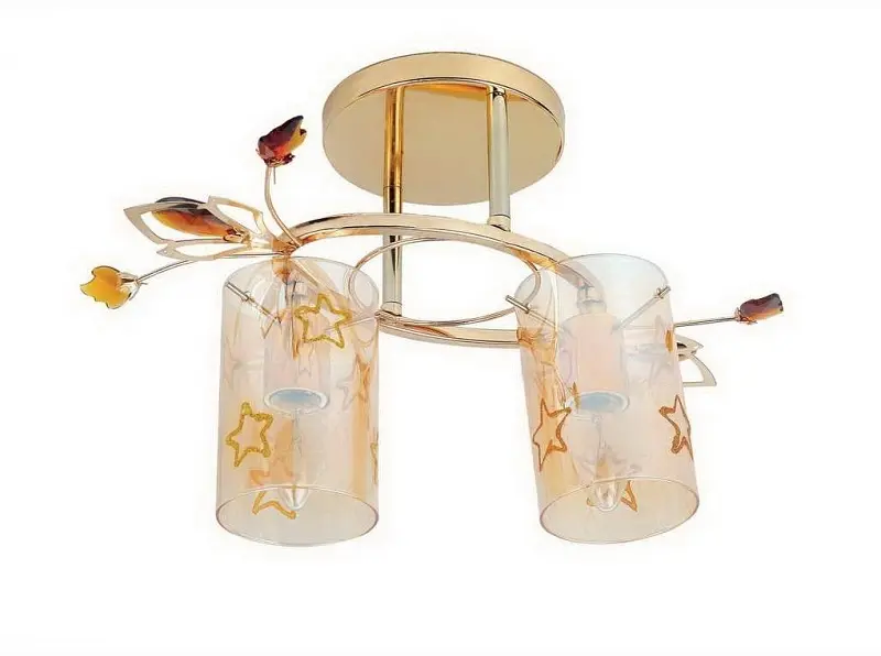 Что может быть лучше стеклянной люстры? Она и свет хорошо пропускает, и ухаживать за ней не сложно, а современные технологии позволяют производить их высочайшего качества. Люстра LK-344S/2 E14 G сочетает в себе два материала: стекло и металл, ее конструкция достаточно прочная, плотно прилегает к потолку. Люстра представляет собой металлический каркас золотистого цвета, к которому прикреплены два стеклянных плафона в форме цилиндра, декорированных золотистыми звездочками. Каркас украшен дополнительными металлическими элементами. Люстра рассчитана на две лампочки с цоколем Е14 мощностью 40 Вт. С такой люстрой вы сможете осветить любой уголок вашего дома. Она может стать вашей помощницей на кухне или же будет незаменимым атрибутом встречи гостей в прихожей.