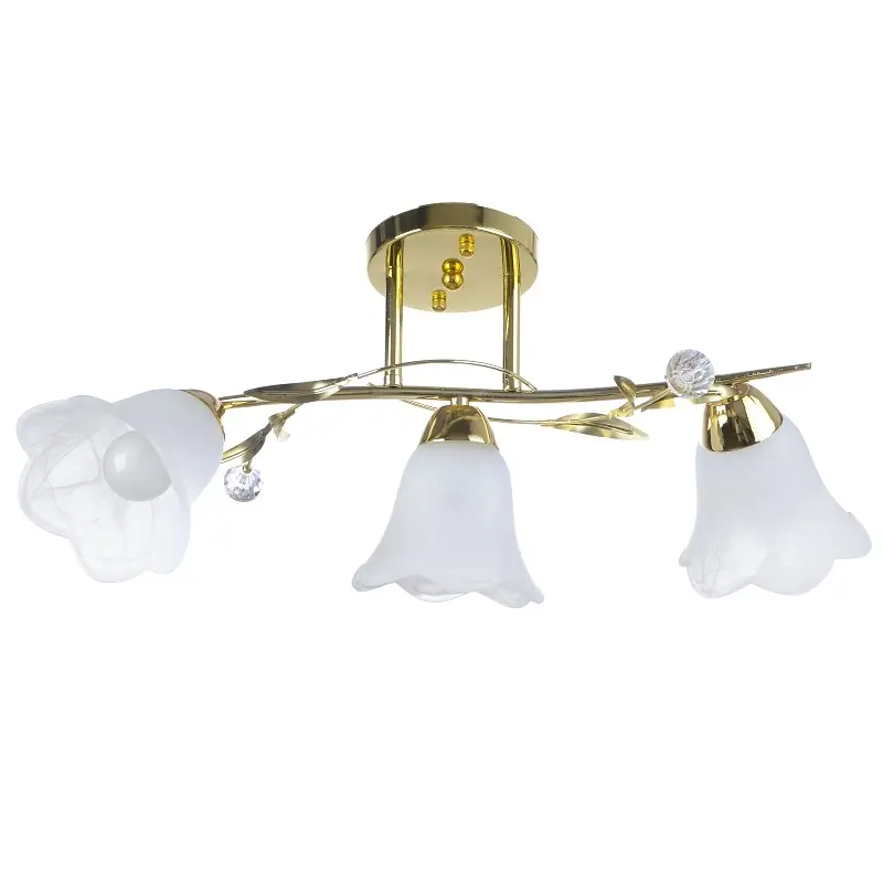 Представляем вашему вниманию люстру LK-364S/3 E14 G. Очень хорошо подойдет для классических интерьеров, так как выглядит сдержанно и в то же время стильно. Люстра изготовлена из металла и стекла, представляет собой нехитрую конструкцию, состоящую из фигурного золотистого каркаса, украшенного металлическими листами и тремя плафонами. Плафоны белого цвета, матовые, выполнены в форме цветочных бутонов. Плафоны направлены в разные стороны, а значит, все углы в помещении будут равномерно освещены. Люстра потолочная, подойдет для небольших комнат с низкими потолками, не займет их жилое пространство. Для работы люстры необходимо использовать три лампочки с цоколем Е14 мощностью 60 Вт. Люстра выполнена в белом цвете, гармонично будет сочетаться со светлой мягкой мебелью, легкими цветочными занавесками на окнах и круглым стеклянным столом в центре комнаты. Заходите в Brille, нам есть чем вас удивить!