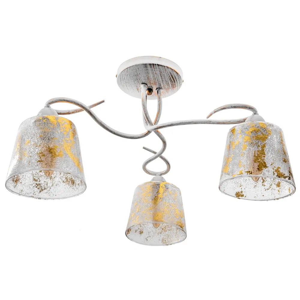 Потолочный вариант люстры BKL-595S/3 E14 WH/G поможет сэкономить пространство любого жилого и нежилого помещения, которое не может похвастаться высотой потолка. Люстра изготовлена из металла и стекла. Традиционно конструкция состоит из металлического каркаса белого цвета с золотистыми вкраплениями, к которому прикреплены три плафона. Плафоны стеклянные, с золотистыми вкраплениями, выполнены в форме чаши. Освещение будет мягким, несколько приглушенным, приятным для восприятия и создания комфортной обстановки. Для работы необходимо использовать три лампочки с цоколем Е14 (раскалительная, энергосберегающая, светодиодная).