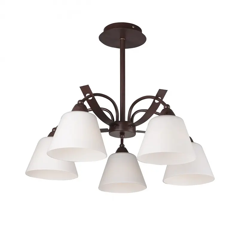 Продуманные дизайны интерьеров сегодня уже ничем не могут удивить - гораздо приятнее созерцать дом, в котором виден характер хозяина. Люстра в минималистичном стиле от ТМ Brille BR-374S/5 идеально подойдет для тех, кто выбирает практичность и функциональность в предметах интерьера. Ее дизайн лишен излишних декоративных элементов, в ней нет вычурных форм, замысловатых линий. Но в ней есть что-то особенное, то, что дает возможность полету фантазии, она не обременит вас покупкой особых предметов интерьера. Сочетать ее можно с чем угодно. Для изготовления люстры традиционно использовали металл и стекло. Конструкция люстры состоит из металлического каркаса и пяти стеклянных, матовых плафонов в форме перевернутой чаши. Плафоны белого цвета, делают свет мягким, что способствует созданию максимально комфортной и уютной атмосферы в доме. Для работы люстры необходимо использовать пять ламп с цоколем Е14 мощностью 40 Вт. Хорошо люстра будет смотреться в гостиной, вешать ее нужно обязательно в центре комнаты или же над обеденным столом.