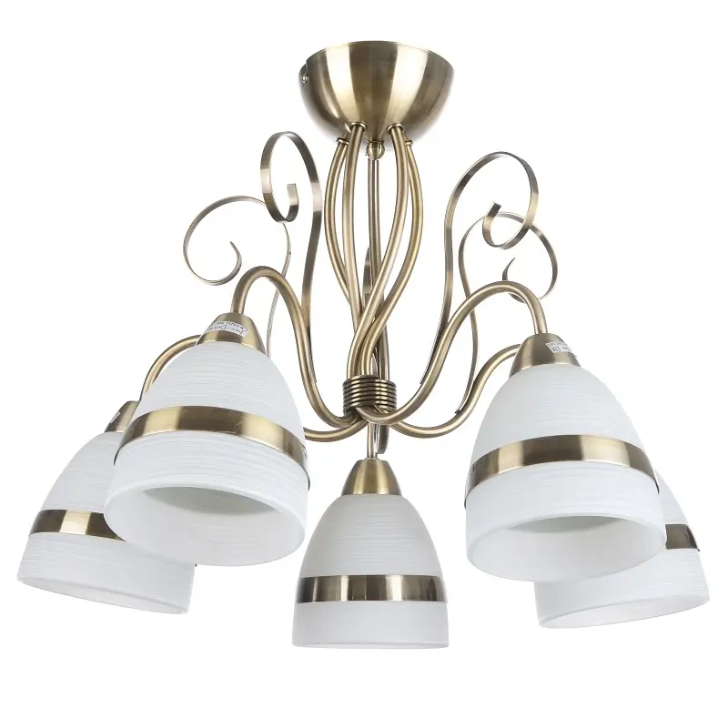 Нестареющая классика в олицетворении люстры от ТМ Brille LK-154S/5 AB подчеркнет статус владельца дома и его безупречный вкус. Как видите, дизайн осветительного прибора скромный, что удивительно для классики, ведь она несколько отличается роскошью и помпезностью. Но если для вас роскошь - второстепенная характеристика, тогда эта люстра - именно то, что вам нужно! Материалами для изготовления послужили металл и стекло. Конструкция состоит из металлического фигурного каркаса с завитками цвета латунь и пяти стеклянных плафонов. Плафоны белого цвета, декорированы металлическими полосками цвета латунь, выполнены в форме перевернутой чаши. Для работы осветительного продола необходимо использовать пять лампочек с цоколем Е14. Люстра излучает мягкий, приятный для восприятия свет, который подарит вашему дому уют.