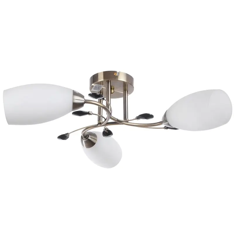 Потолочная люстра LK-170S/3 в классическом стиле дополнит собой любое помещение, как большое, так и маленькое, ведь ее компактные размеры позволяют с легкостью это сделать. Для изготовления люстры мастера выигрышно сочетали два наиболее распространенных материала: металл и стекло. Это и не удивительно, ведь благодаря хорошим характеристикам металла изделию из него можно придать любую нужную форму. Стекло же хорошо пропускает свет, а современные технологии позволяют сделать его высочайшего качества. Благодаря такому выигрышному сочетанию люстра прослужит вам много лет. К тому же она не требует особого ухода. Достаточно просто протереть каркас и плафоны тряпкой. Люстра оборудована тремя светлыми стеклянными матовыми плафонами, которые направлены в три разных стороны, что позволяет осветить все уголки комнаты. Металлический каркас серебристого цвета декорирован камешками темно-синего цвета. Камешков немного, что не утяжеляет внешний вид люстры. Люстра рассчитана на три лампы с цоколем Е14.