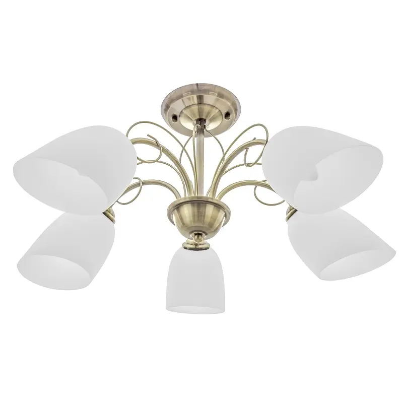 Люстра потолочная LK-572S/5 E27 AB идеально впишется в интерьер в классическом стиле. Каркас цвета старого золота изготовлен из металла, белые матовые плафоны - из стекла. Люстра подойдет для освещения спальни, гостиной или столовой. Для работы люстры требуется 5 лампочек с цоколем E27 мощностью 60 Вт. Можно использовать светодиодные, энергосберегающие или лампочки накаливания. Рекомендуем использовать светодиодные лампы, которые не нагреваются и не содержат вредных веществ. На всю продукцию действует гарантия.