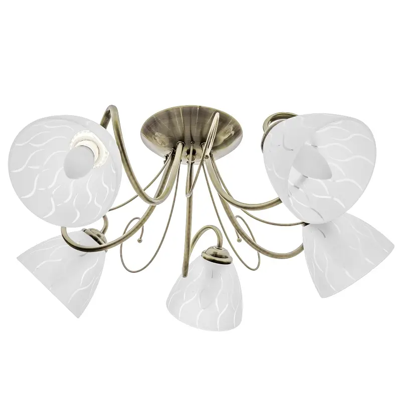 Люстра LK-595S/5 E27 AB выполнена в классическом стиле. Она состоит из металлического каркаса цвета старого золота и стеклянных белых плафонов в форме чаш. Люстра подходит для освещения спальни, гостиной или прихожей. Универсальная палитра цветов позволяет поместить светильник в различных интерьерах. Для работы люстры требуется 5 лампочек с цоколем E27 мощностью 60 Вт. Подходят светодиодные, энергосберегающие или лампочки накаливания. Рекомендуем использовать светодиодные лампы, поскольку они не нагреваются, экономят электроэнергию и не содержат вредных веществ. На всю продукцию действует гарантия.