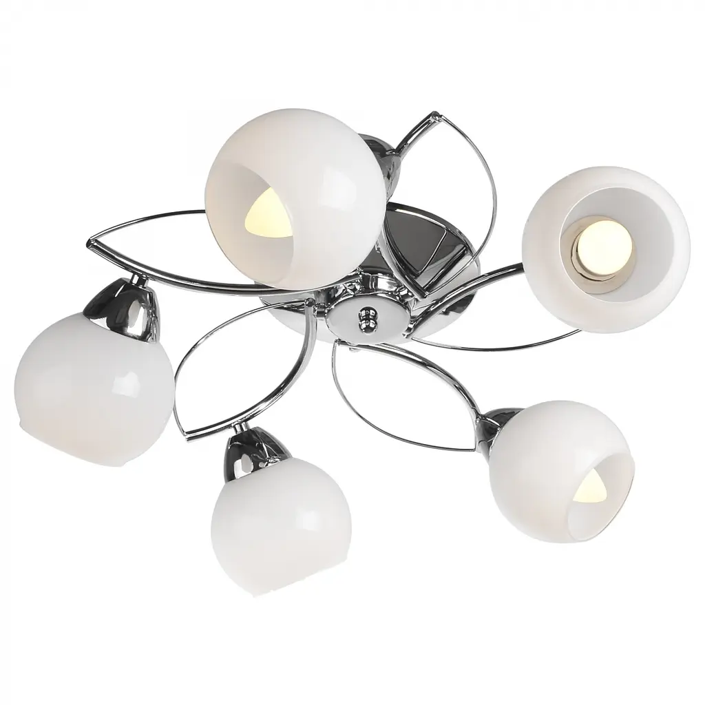 Люстры являются важнейшим предметом интерьера и главным источником света в любом помещении. Ведь если в помещении будет тусклое или слишком яркое освещение, то ваши глаза быстро устанут, а вы будете испытывать дискомфорт. Люстра LK-258C/5 E27 способна подарить вам качественное освещение, а еще станет лучшим украшением вашего дома. Изготовлена люстра из металла и стекла, ее конструкция плотно прилегает к потолку, так что вы смело можете вешать ее в небольших помещениях с низкими потолками. Конструкцию люстры составляет металлический хромированный каркас и пять стеклянных матовых плафона белого цвета. Люстра излучает мягкий, слегка приглушенный свет. Для достижения яркого освещения вы можете использовать бра или торшер, выполненные в том же стиле, что и люстра. Хорошо она будет смотреться и с настольной лампой. Для работы потолочной люстры необходимо пять лампочек с цоколем Е14.