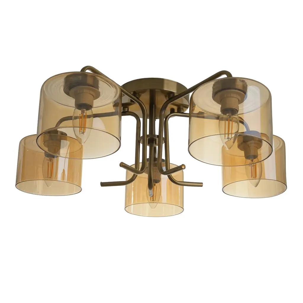 Модель LK-666S/5 E27 AB оборудована плафонами для более яркого освещения помещений. На люстре установлены 5 плафонов коричневого цвета, которые помогают создавать приятное теплое освещение. Они отлично подходят для спальни или комнаты отдыха. В плафоны можно установить лампочки с нитью накаливания для усиления эффекта или светодиодные лампочки для более яркого освещения. Тип цоколя в люстре - Е27. Конструкция основания металлическая золотистого цвета. К потолку она крепится с помощью небольшой цепочки и потолочного крюка. На всю продукцию действует гарантия.