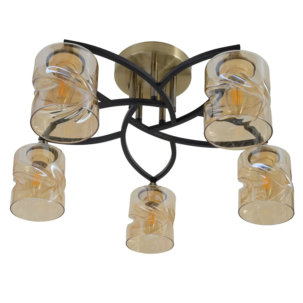 Потолочная люстра LK-664S/5 E27 AB+BK - отличное решение для освещения помещений больших и средних размеров. Благодаря материалам и оформлению модель будет хорошо смотреться в интерьерах, выполненных в стилях модерн и винтаж. В люстре гармонично сочетаются латунная основа, металлический каркас черного цвета в виде бутона и слегка затемненные стеклянные плафоны. Вся конструкция легко устанавливается на потолок благодаря специальной потолочной планке. В каждом плафоне размещен тип цоколя Е27 мощностью 60 Вт. Тип освещения пользователь может выбрать по своему усмотрению. Люстра станет настоящим украшением дома или офиса.
