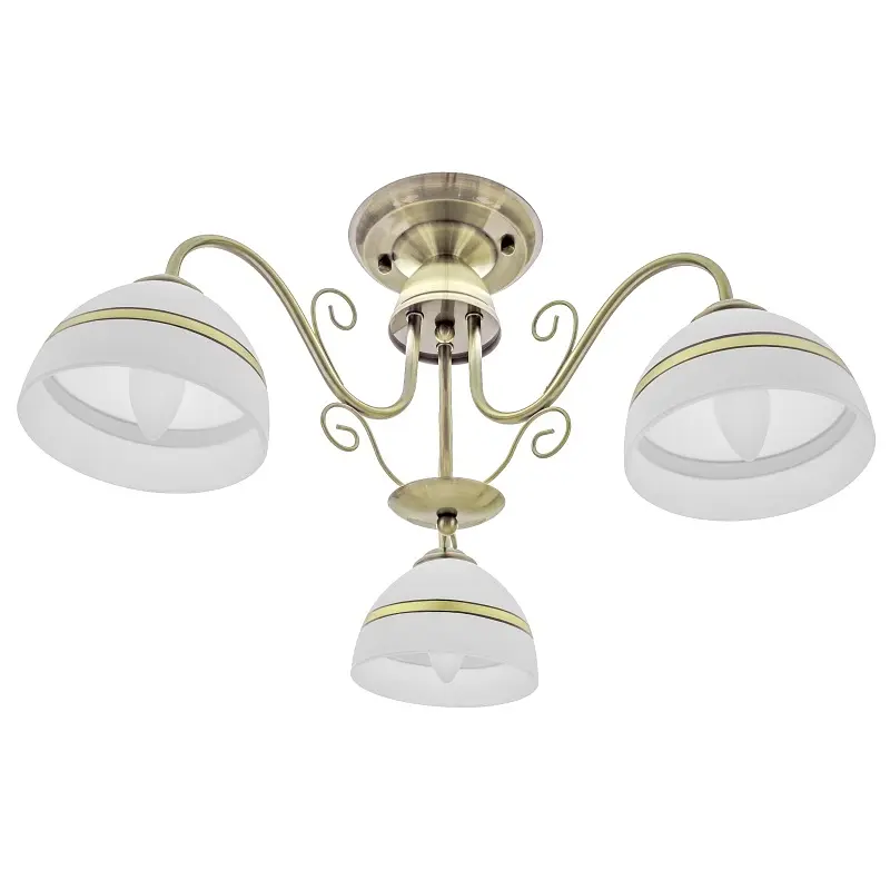 Люстра LK-570S/3 E27 AB прекрасно подходит для интерьера в классическом стиле. Металлический каркас выполнен в цвете старого золота. Полосками такого же цвета украшены белые стеклянные плафоны в форме чаши. Такая люстра будет хорошо смотреться в гостиной, спальне или столовой. Для работы люстры требуется 3 лампочки с цоколем E27 мощностью 60 Вт. Можно использовать светодиодные, энергосберегающие или лампочки накаливания.