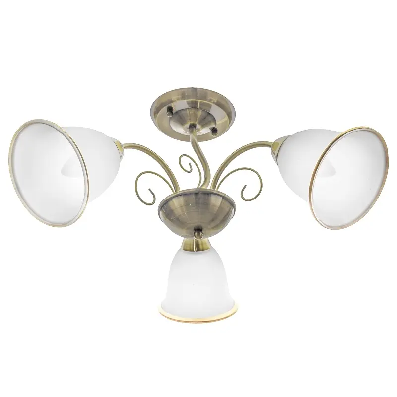 Люстра LK-575S/3 E27 AB - прекрасный вариант для освещения гостиной или спальни. Металлический фигурный каркас выполнен в цвете старого золота. Белые стеклянные плафоны украшены тонкими ободками в тон каркаса. Люстра отлично подходит для помещений, оформленных в классическом стиле. Для работы люстры требуется 3 лампочки с цоколем E27 мощностью 60 Вт. Можно использовать светодиодные, энергосберегающие или лампочки накаливания. Рекомендуем использовать светодиодные лампы, которые не нагреваются и не содержат вредных веществ. На всю продукцию действует гарантия.