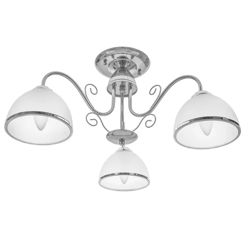 Люстра LK-571S/3 E27 CH удачно дополнит интерьер вашего дома. К металлическому хромированному каркасу прикреплены три белых стеклянных плафона в форме чаши. Они дополнены хромированными ободками. Люстра подходит для освещения гостиной, спальни или прихожей. Для работы люстры требуется 3 лампочки с цоколем E27 мощностью 60 Вт. Можно использовать светодиодные, энергосберегающие или лампочки накаливания. Такая люстра понравится тем, кто ценит простое и стильное оформление. На всю продукцию действует гарантия.