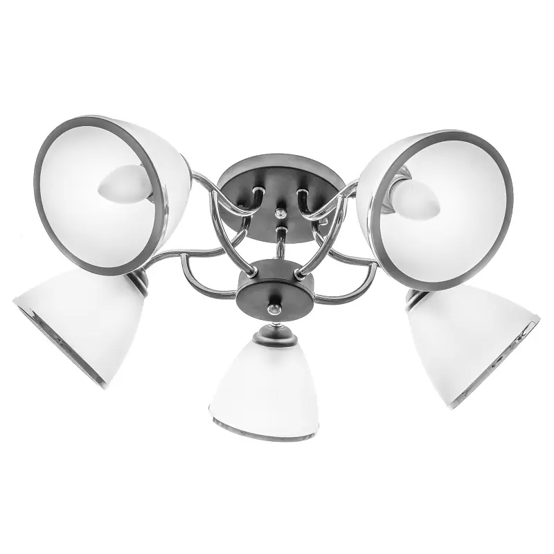 Люстра LK-594S/5 E27 CH в стиле модерн подходит для освещения спальни, гостиной или прихожей. Металлический каркас выполнен в черном цвете с хромированными вставками. Стеклянные белые плафоны в форме чаши также дополнены хромированной окантовкой. Небольшая высота люстры позволяет повесить ее в комнате с низким потолком. Для работы люстры требуется 5 лампочек с цоколем E27 мощностью 60 Вт. Подходят светодиодные, энергосберегающие или лампочки накаливания. Рекомендуем использовать светодиодные лампы, поскольку они не нагреваются, экономят электроэнергию и не содержат вредных веществ. На всю продукцию действует гарантия.
