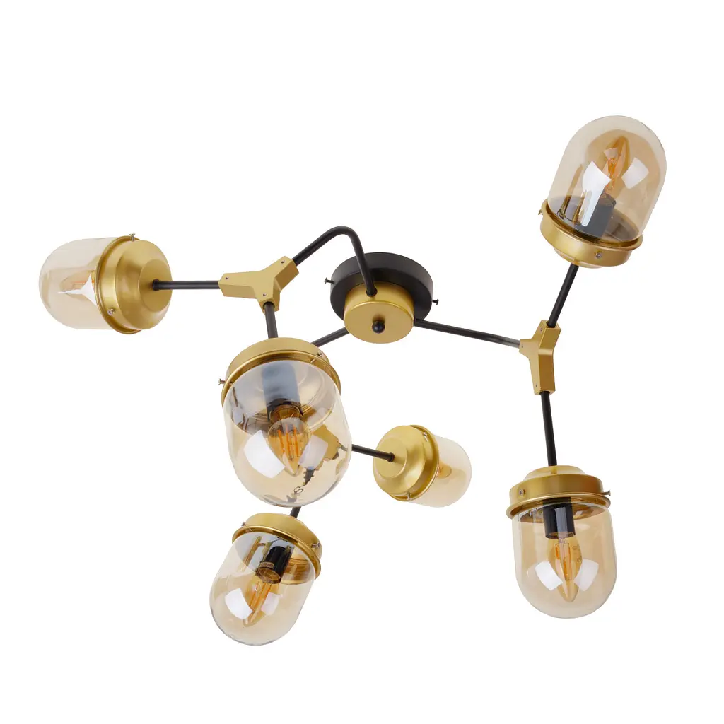 Люстра BL-804S/6 E14 SJ + BK - идеальный светильник для спальни, кухни, детской, зала, гостиной или прихожей. Люстра на шесть плафонов прекрасно подойдет как для дома, так и для офиса, ресторана, гостиницы, магазина. Купить люстру на шесть плафонов можно для стилей классика, модерн, современный, хай-тек и другие. Конструкция светильника состоит из черной металлической основы и прутьев, к которым крепятся стеклянные прозрачные плафоны. Для работы люстры достаточно шести лампочек с цоколем Е14 мощностью 40 Вт. Установив энергосберегающие и лед лампы, вы можете сэкономить до 90-95% на электроэнергии. В светильник подходят также обычные лампы накаливания. Люстра достаточно мощная и благодаря большому количеству источников света обеспечит прекрасное основное освещение в любой комнате. Кроме того, светильник на 6 плафонов стильный, современный, привлекательный, а значит послужит прекрасным украшением интерьера. Крепится к потолку с помощью монтажной планки, вид монтажа - накладной. Люстра порадует даже самых требовательных хозяев.
