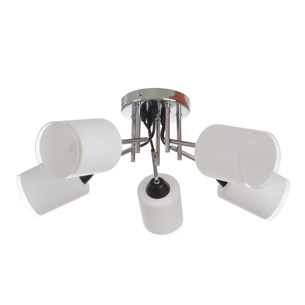 Современная люстра на 5 лампочек LK-724S/5 E27 BK/CH предназначена для обустройства центрального освещения в гостиной, спальне, небольшом холле, кабинете. Лаконичный дизайн модели позволяет использовать ее в административных учреждениях и офисах. Конструкция люстры достаточно проста, она включает круглую металлическую основу, к которой крепятся держатели патронов со стеклянными плафонами открытого типа. Плафоны имеют цилиндрическую форму. Матовое стекло равномерно распределяет световой поток и смягчает яркость лучей. Для работы люстры нужно использовать 5 лампочек с цоколем E27 мощностью 60 Вт. Это могут быть светодиодные, энергосберегающие или лампочки накаливания. Степень защиты оболочки корпуса составляет IP20. Люстру можно устанавливать только в помещении с нормальным уровнем влажности. Покрытие люстры - хром, некоторые элементы имеют черный цвет. Такой дизайн позволяет использовать светильник в современных интерьерах. К потолку люстра крепится с помощью монтажной планки.