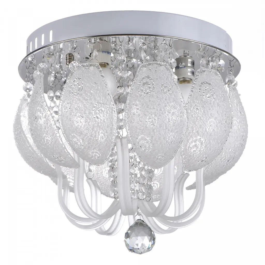 Для того, чтобы подчеркнуть классический стиль дизайна интерьера вашего дома, вам необходимо грамотно подойти к выбору осветительного прибора. С одной стороны он должен быть изюминкой интерьера, а с другой не должен занимать его жилое пространство. В данном случае подойдет потолочная Классическая люстра BCL-457S/3 E14 "30. Для изготовления люстры мастера использовали стекло и металл. Конструкция светильника состоит из круглой зеркальной основы, хорошо отражающей свет вниз. К ней прикреплены патроны для лампочек с цоколем E14. Кроме патронов к основе также прикреплены стеклянные подвески с небольшими гранеными камешками, а также стеклянные элементы белого цвета, имитирующие форму лепестков. В центре конструкции находится один большой стеклянный камешек. Для работы люстры необходимо использовать три лампочки. Кроме этого, люстра оборудована светодиодной подсветкой. Помимо жилых помещений, такую люстру можно смело использовать в изысканных ресторанах, различного рода торжественных залах.