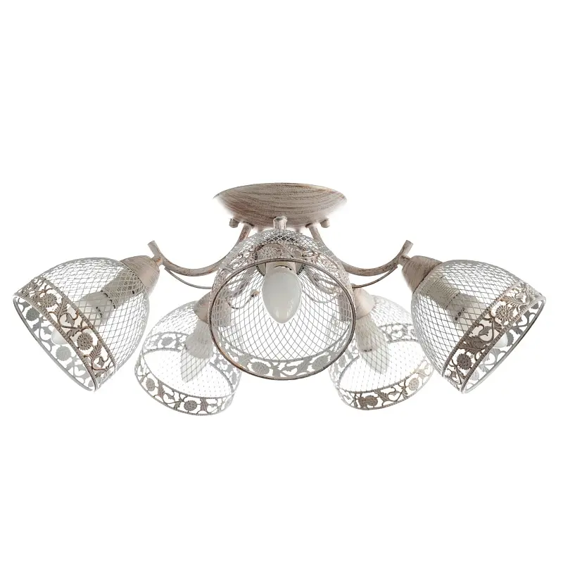 Создайте комфортную и уютную атмосферу в доме с помощью ненавязчивой потолочной люстры BKL-586S/5 E14 WH от ТМ Brille. Неприхотливый дизайн, нейтральная цветовая гамма и небольшая конструкция позволяют поместить модель в любой интерьер, как классический, так и современный. Наиболее гармонично люстра будет смотреться в спальне, наполняя ее мягким, теплым светом, создавая при этом особую камерную атмосферу. Материалом для изготовления люстры послужил металл, окрашенный в белый цвет с вкраплениями золотистого. Конструкция светильника представлена небольшим каркасом, к которому прикреплены пять плафонов. Плафоны выполнены в форме чаш, стенки - в виде сеточки. Сквозь зазоры будет хорошо пробиваться свет. Плафоны дополнительно декорированы стеклянными гранеными прозрачными камешками. Для работы люстры необходимо использовать пять лампочек с цоколем Е14. Это могут быть традиционные лампочки накаливания, энергосберегающие или светодиодные. На всю продукцию действует гарантия.