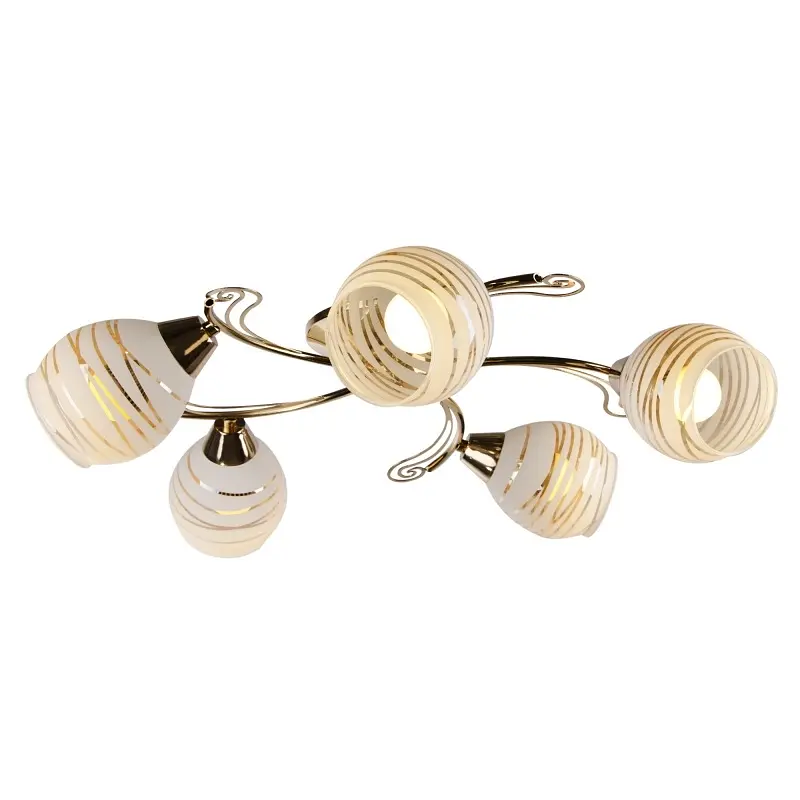 Внесите в свою жизнь немного ярких красок вместе с великолепной люстрой LK-507S/5 E27 в стиле флористика. С этой люстрой Ваша комната будет выглядеть свежо и оригинально. Цветочные мотивы придадут ей яркость и легкость в любое время года. Изготовлена люстра из стекла и металла. Благодаря стеклу, которое хорошо пропускает свет, светоотдача от люстры будет максимальной. Она имеет пять плафонов в виде чаши, они стеклянные с матовым покрытием белого цвета. Матовое покрытие делает свет мягким и уютным. Для работы люстры необходимо пять лампочек с цоколем Е27 мощностью 60 Вт. Металлическое крепление золотистого цвета имитирует лепестки. Такая люстра подойдет для небольших комнат с невысокими потолками. Она визуально придаст такой комнате ощущение большего пространства благодаря своей компактности. Люстру можно повесить в прихожей, на кухне, в детской.