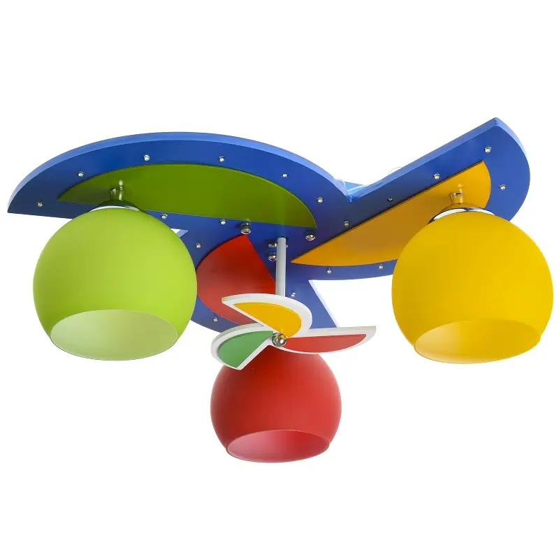 Украшайте детскую комнату ярко, чтобы вашему малышу было весело проводить свое свободное время: читать, гулять с друзьями или готовиться ко сну. Потолочный светильник KL-434C/3 E27+LED от ТМ Brille - настоящая находка как для девочек, так и для мальчиков. Светильник изготовлен из металла, дерева и стекла. К деревянной разноцветной основе прикреплены три стеклянных плафона: красный, желтый и зеленый. Они выполнены в форме небольших чаш. Для работы следует использовать три лампочки с цоколем Е27. Дополнительно осветительный прибор оборудован светодиодной подсветкой. Светильник имеет три режима освещения. В первом работают основные лампочки, во втором - светодиоды, в третьем - и лампы, и светодиоды. Переключать режимы освещения можно настенным клавишным выключателем. Небольшой вентилятор в центре светильника вращается после включения светильника. Данный светильник порадует и вас, и вашего ребенка.