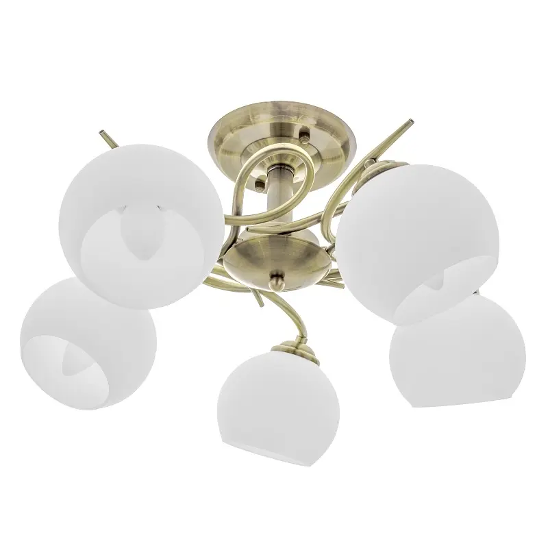 Украсьте свой дом стильной люстрой LK-568S/5 E27 AB. Металлический каркас необычной формы выполнен в цвете старого золота. Белые матовые плафоны в форме шара сделаны из стекла. Люстра будет хорошо смотреться в спальне, гостиной или прихожей. Благодаря цветовой гамме и лаконичному дизайну, она подойдет и к классическому, и к современному стилю интерьера. Для работы люстры нужно использовать 5 лампочек с цоколем E27 мощностью 60 Вт. Подойдут светодиодные, энергосберегающие или лампочки накаливания.