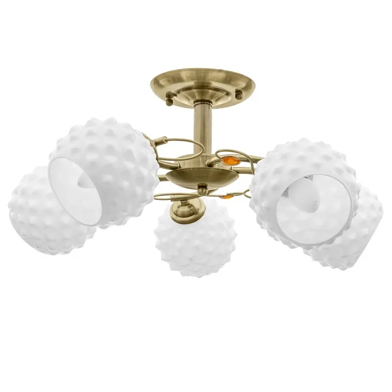 Оригинальная люстра LK-576S/5 E27 AB - не только осветительный прибор, но и украшение интерьера. Металлический каркас цвета старого золота дополнен декоративными элементами. Стеклянные белые плафоны отличаются рельефной поверхностью. Такая люстра подойдет для освещения гостиной или спальни. Для работы люстры требуется 5 лампочек с цоколем E27 мощностью 60 Вт. Подойдут светодиодные, энергосберегающие или лампочки накаливания. Рекомендуем использовать светодиодные лампы, которые не нагреваются, экономят электроэнергию и не содержат вредных веществ.